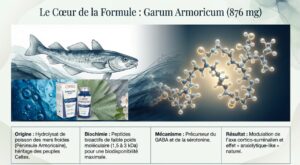 Ces polypeptides marins bioactifs agissent directement sur l’axe du stress (hypothalamus-hypophyse-surrénales) pour réguler la production de cortisol et d’adrénaline. Ils favorisent l’équilibre de la dopamine et de la sérotonine, améliorant ainsi l’humeur et la résilience émotionnelle.